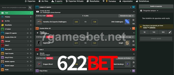 O 622bet oferece uma grande seleção de opções de apostas em e-sports com probabilidades competitivas